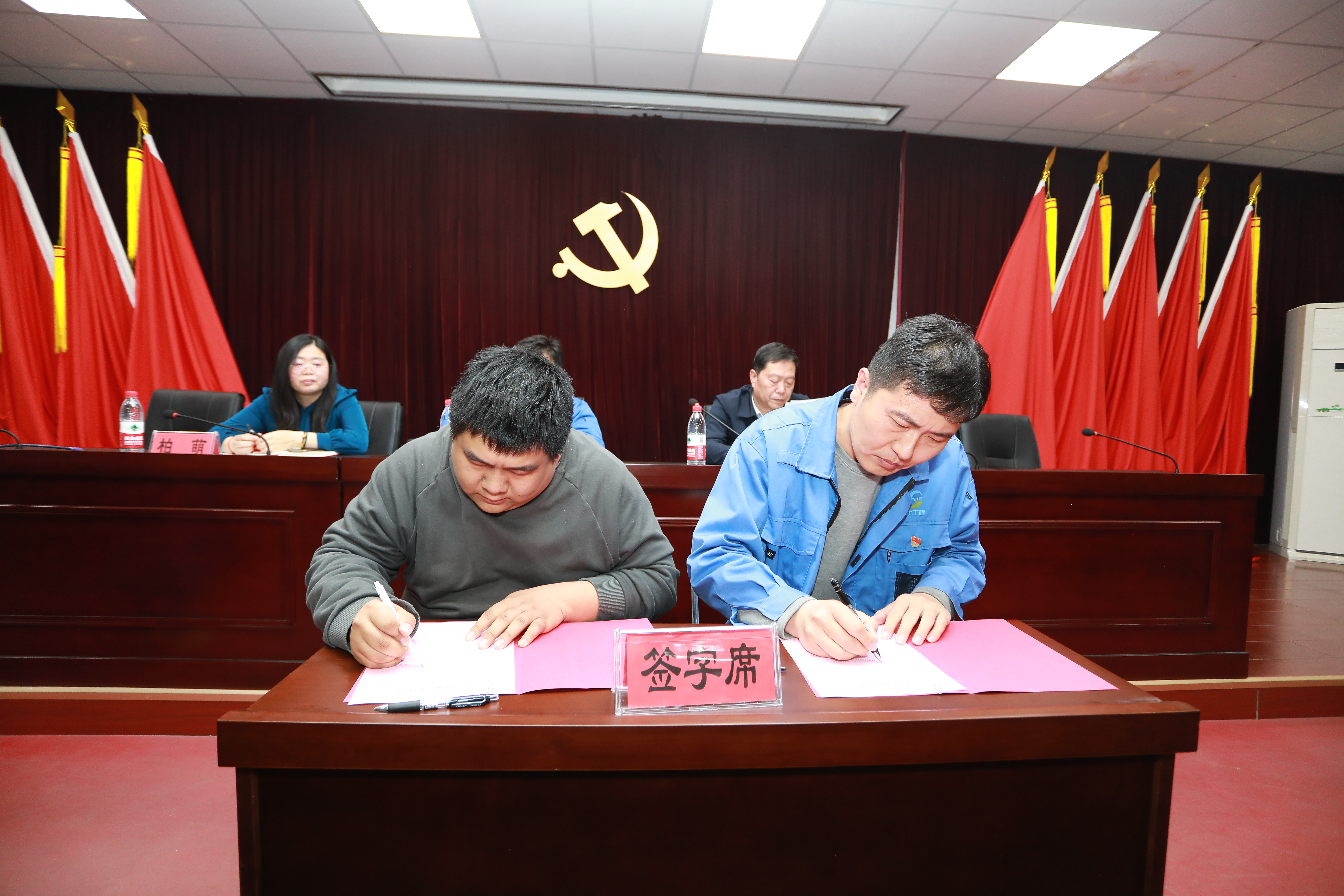 公司領(lǐng)導(dǎo)為培訓(xùn)導(dǎo)師代表頒發(fā)培養(yǎng)導(dǎo)師聘書,師徒代表在現(xiàn)場簽訂培養(yǎng)任務(wù)書。