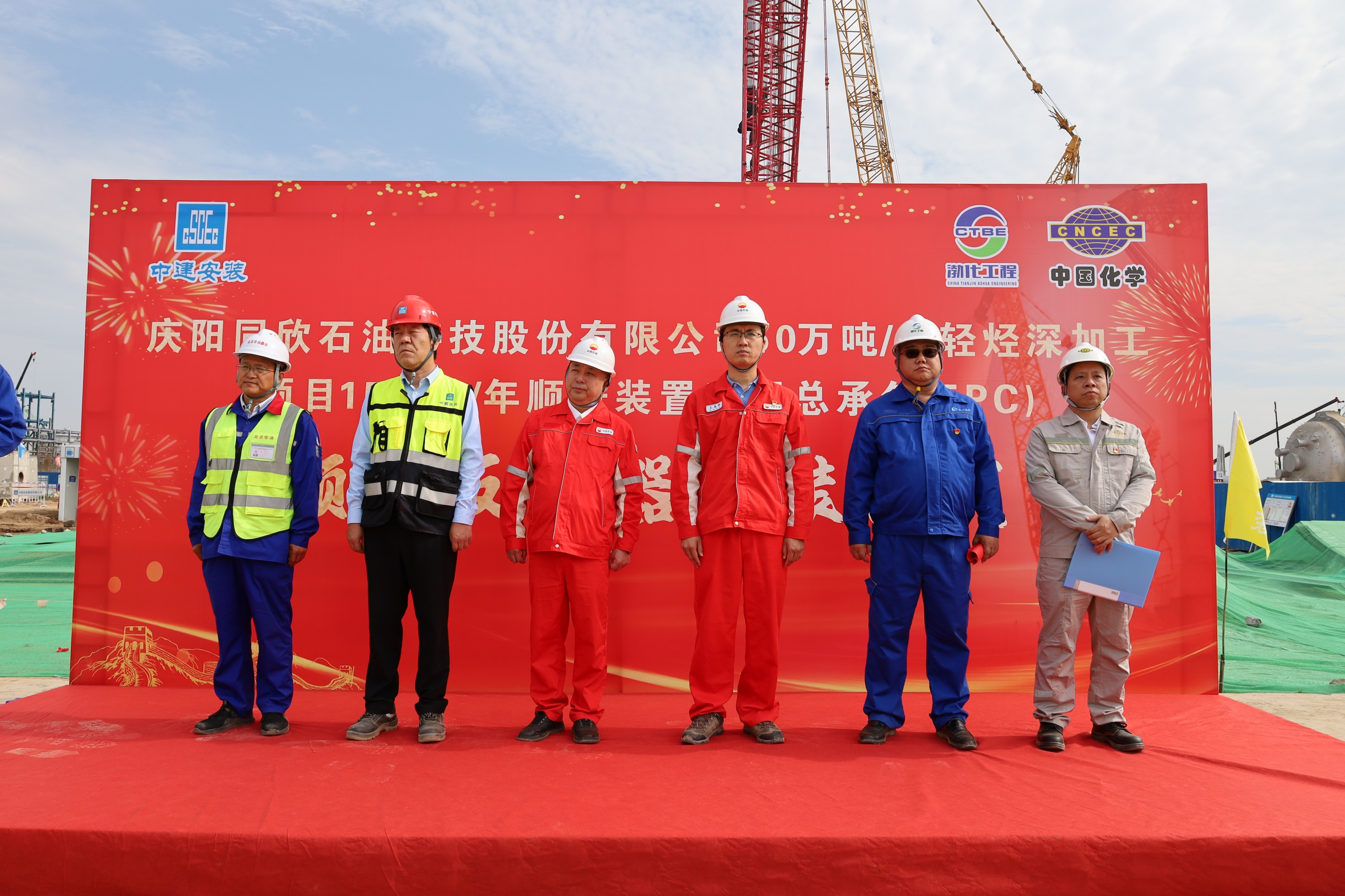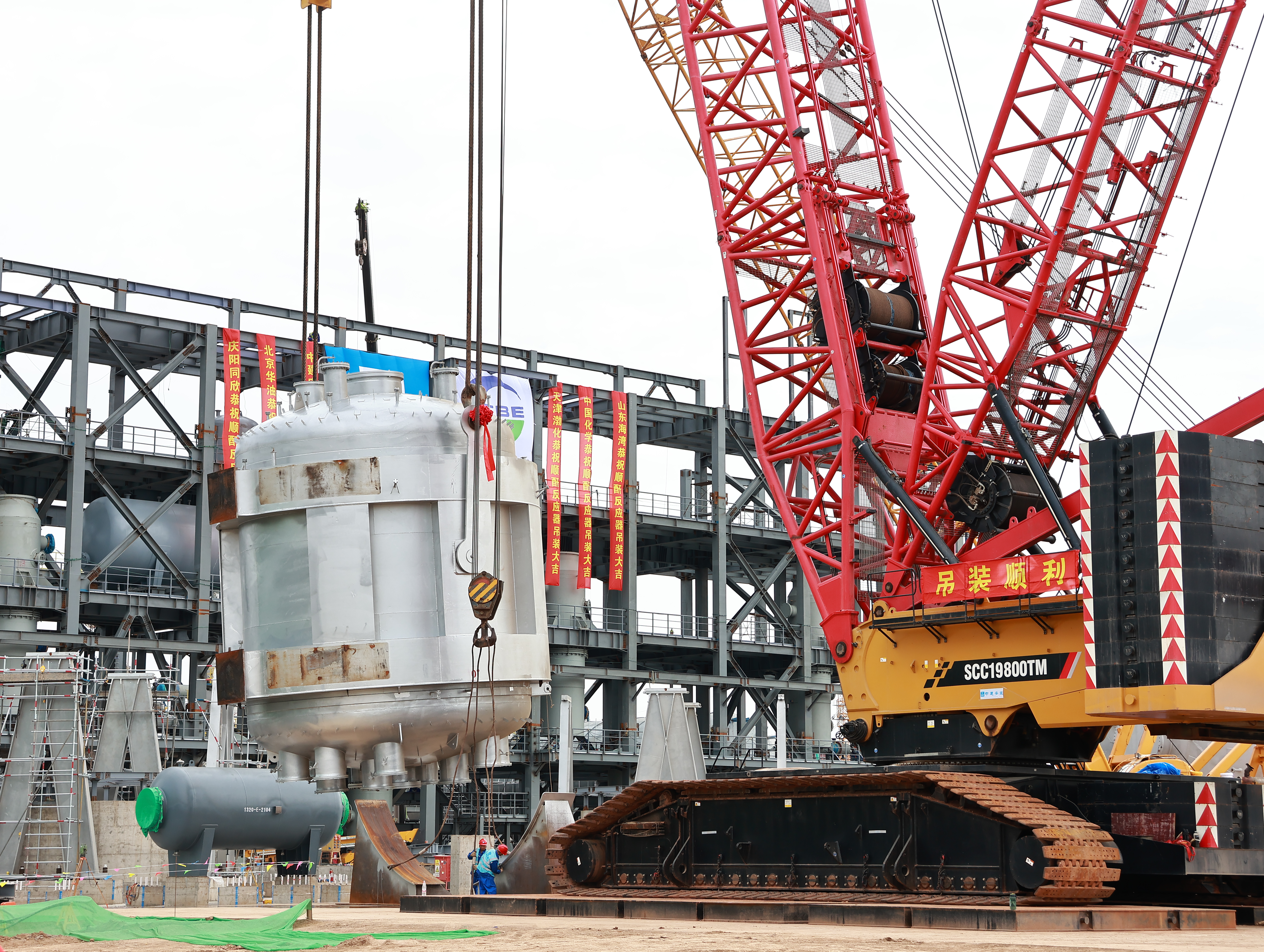 2025年6月19日,渤化工程總承包的慶陽同欣50萬噸/年輕烴深加工項目15萬噸/年順酐裝置項目現(xiàn)場,彩旗飄揚(yáng),氣氛熱烈。順酐裝置核心設(shè)備——順酐反應(yīng)器吊裝儀式在此隆重舉行,順酐反應(yīng)器起吊標(biāo)志著項目建設(shè)取得突破性進(jìn)展,正式進(jìn)入核心設(shè)備安裝階段。