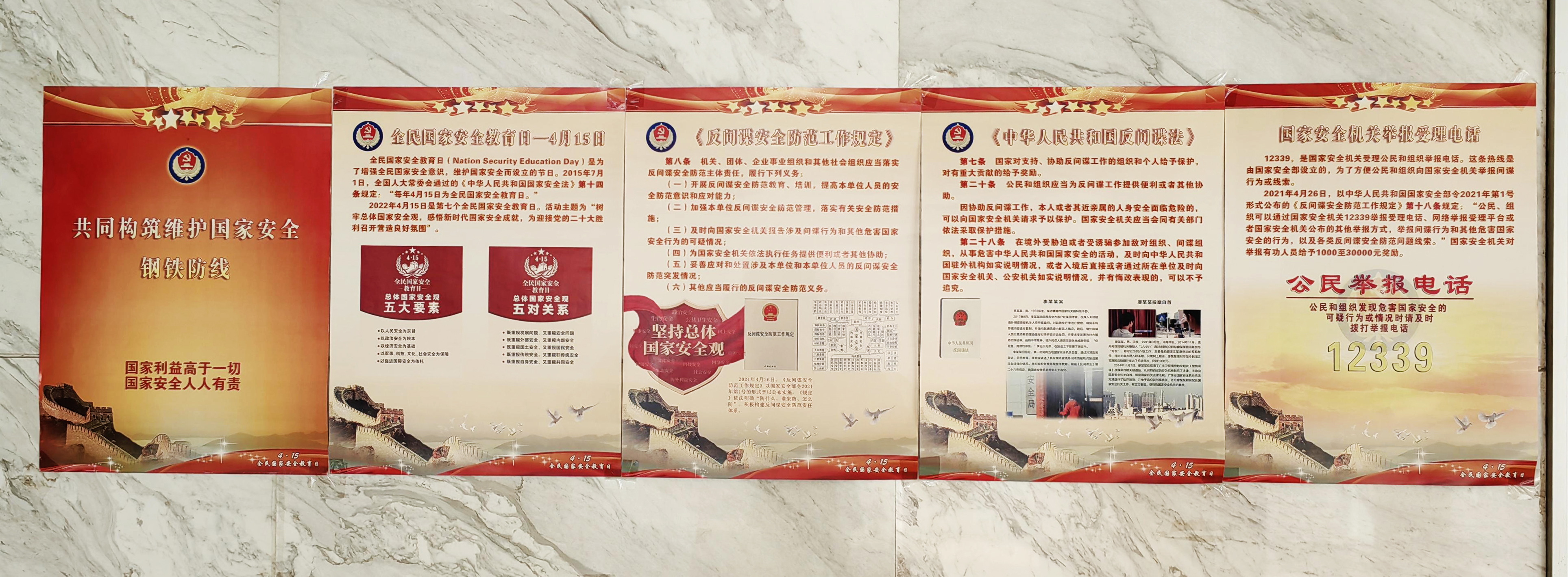 通過在公司開展集中學(xué)習(xí)、宣傳欄張貼宣傳海報、LED大屏幕滾動播放、線上和線下答題的方式,及時向廣大黨員干部和職工宣傳了《國家安全法》《反恐怖主義法》《反間諜法》等法律法規(guī),進一步增強了全體職工自覺維護國家安全的意識,切實提高了廣大職工防范和應(yīng)對風(fēng)險的意識和能力,公司黨委號召大家積極與一切危害國家安全的行為作斗爭,以實際行動為企業(yè)高質(zhì)量發(fā)展保駕護航。